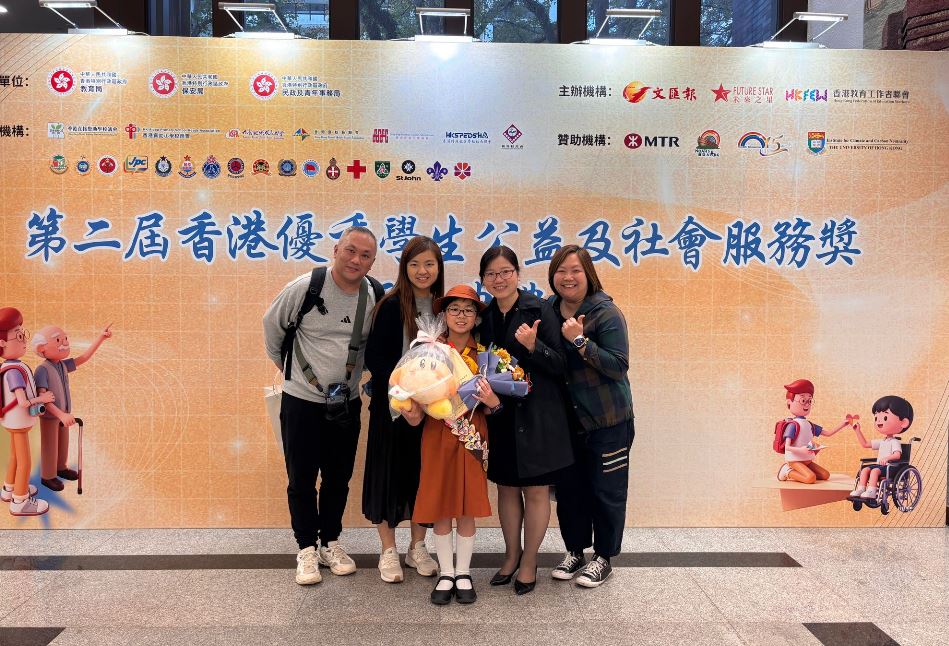 2026-01-18 第二屆「香港優秀學生公益及社會服務獎」舉行頒獎典禮,此獎項評選反應熱烈,全港中小學與特殊學校當中有超過300名學生報名。經香港女童軍總會推薦,再經由大會一眾評選委員的專業評選,本校 6C劉晞妤 最終榮獲當中最高殊榮「傑出服務獎」(只有10位學生獲此獎項,當中4位為小學生),以表揚學生積極參與公益服務的精神!