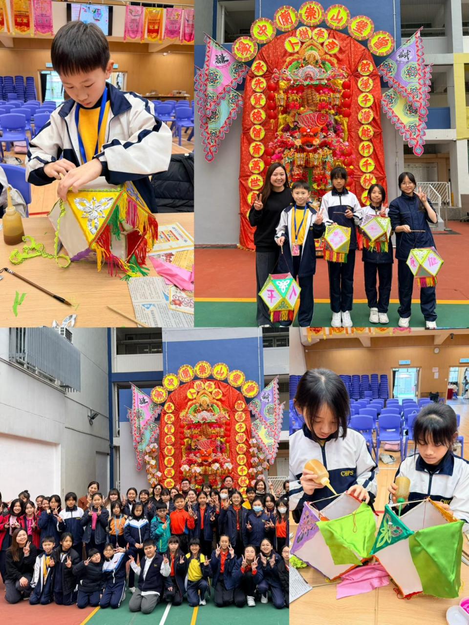 四位學生參加曾壁山(崇蘭)中學舉辦的《扎根傳統·綻放未來》活動,認識傳統紮作技藝,由著名紮作師傅教授製作花炮技巧,共同製作全港學界最高花炮飾品,獲益良多。