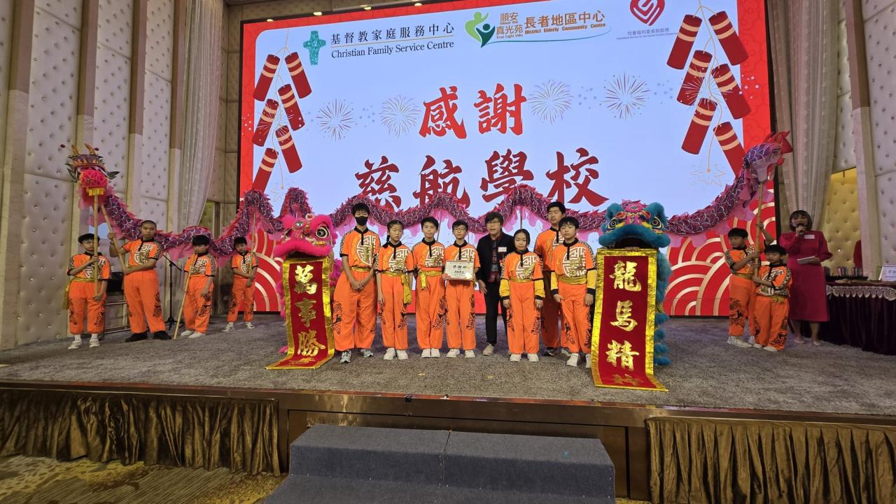 本校醒獅隊、運動大使及校友參與長者地區中心團年宴表演,為五百多名長者送上祝福及溫暖
