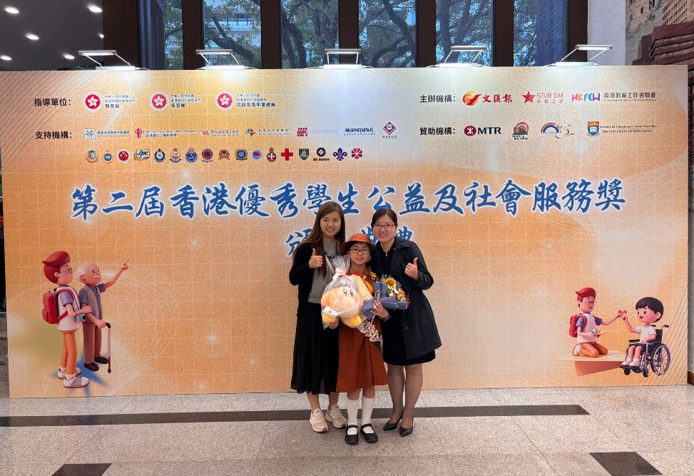 2026-01-18 第二屆「香港優秀學生公益及社會服務獎」舉行頒獎典禮,此獎項評選反應熱烈,全港中小學與特殊學校當中有超過300名學生報名。經香港女童軍總會推薦,再經由大會一眾評選委員的專業評選,本校 6C劉晞妤 最終榮獲當中最高殊榮「傑出服務獎」(只有10位學生獲此獎項,當中4位為小學生),以表揚學生積極參與公益服務的精神!